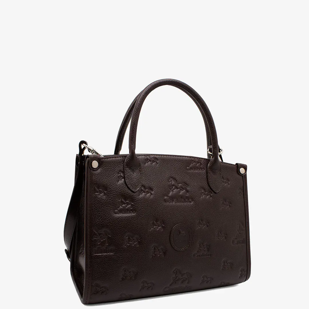 Bolsa de mão Cavalinho com alça de ombro extra. A divisão principal possui cinco compartimentos, dois livres, dois com fecho de correr e um para telemóvel. Dispõem de uma divisão na parte de trás com fecho de correr personalizado.