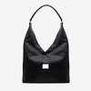 Bolsa de ombro, no seu interior possui três compartimentos, um livre, outro com fecho de correr e um para o telemóvel.