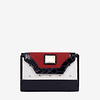 Carteira com duas divisórias: na frontal, dois compartimentos para notas, um para documentos, duas bolsas transparentes, uma divisão com fecho de correr e capacidade para dez cartões; na traseira, dois compartimentos livres e um com fecho de correr para moedas.