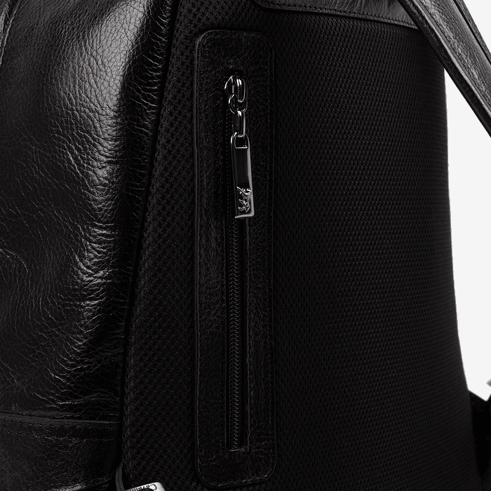 Mochila com duas alças reguláveis e uma asa de mão. Possui uma divisória principal com fecho de correr personalizado e um compartimento na frente para fácil acesso. Integra um pequeno bolso no interior com fecho de correr.